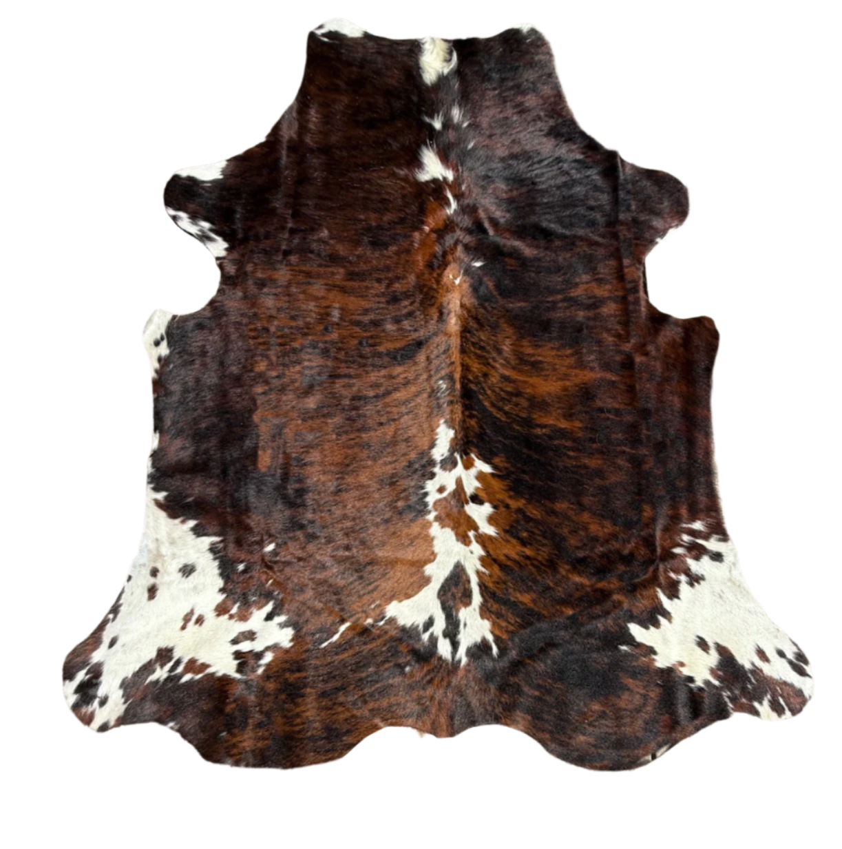 Brown and white cowhide rug